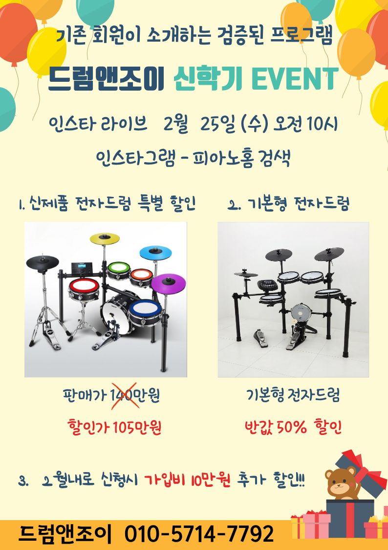 기존회원이 소개하는 검증된 프로그램 - 드럼앤조이 신학기 이벤트